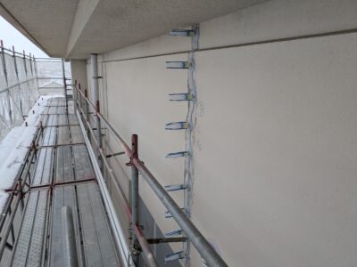 塗装前に外壁のひび割れに樹脂を流し込む作業です。